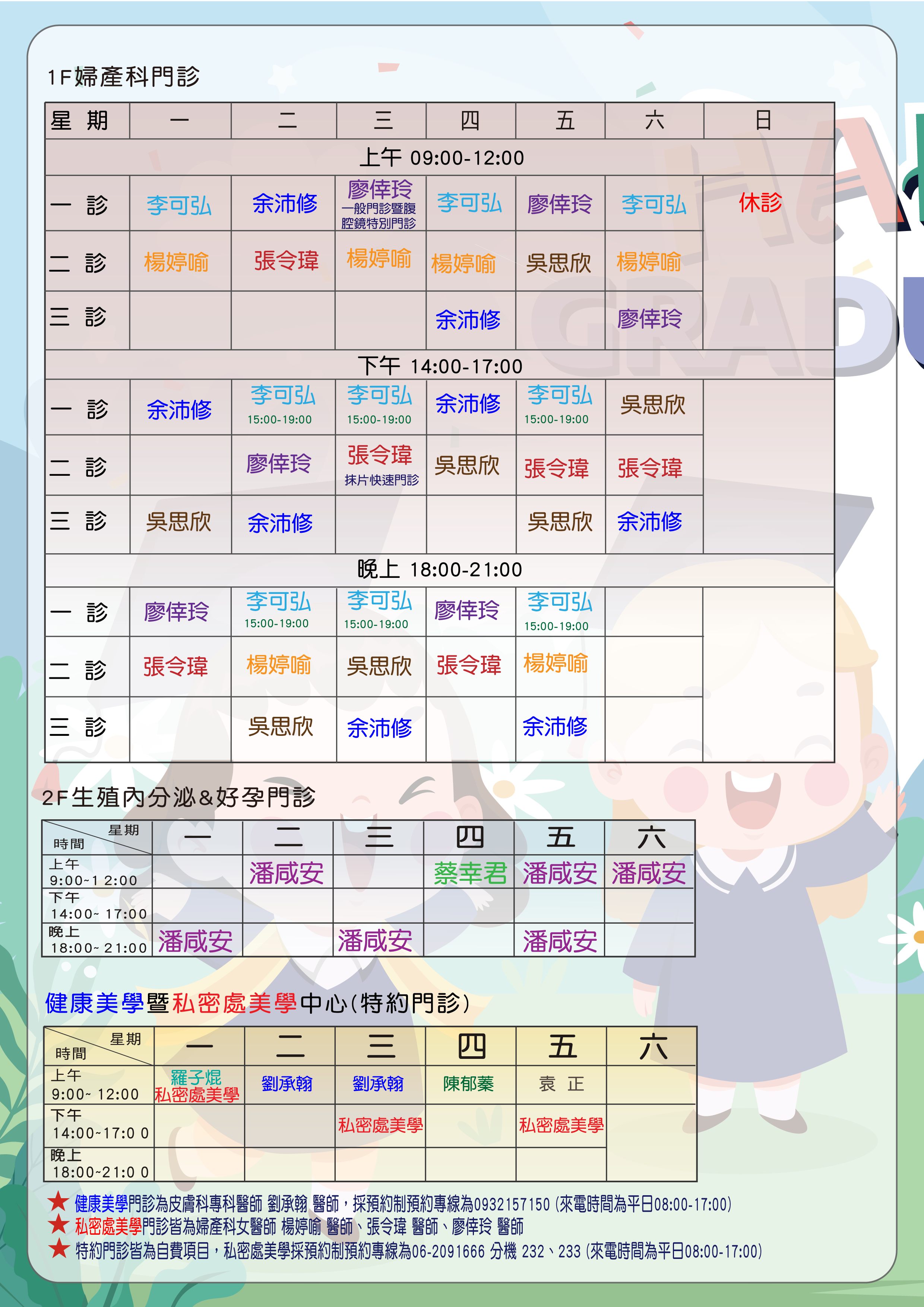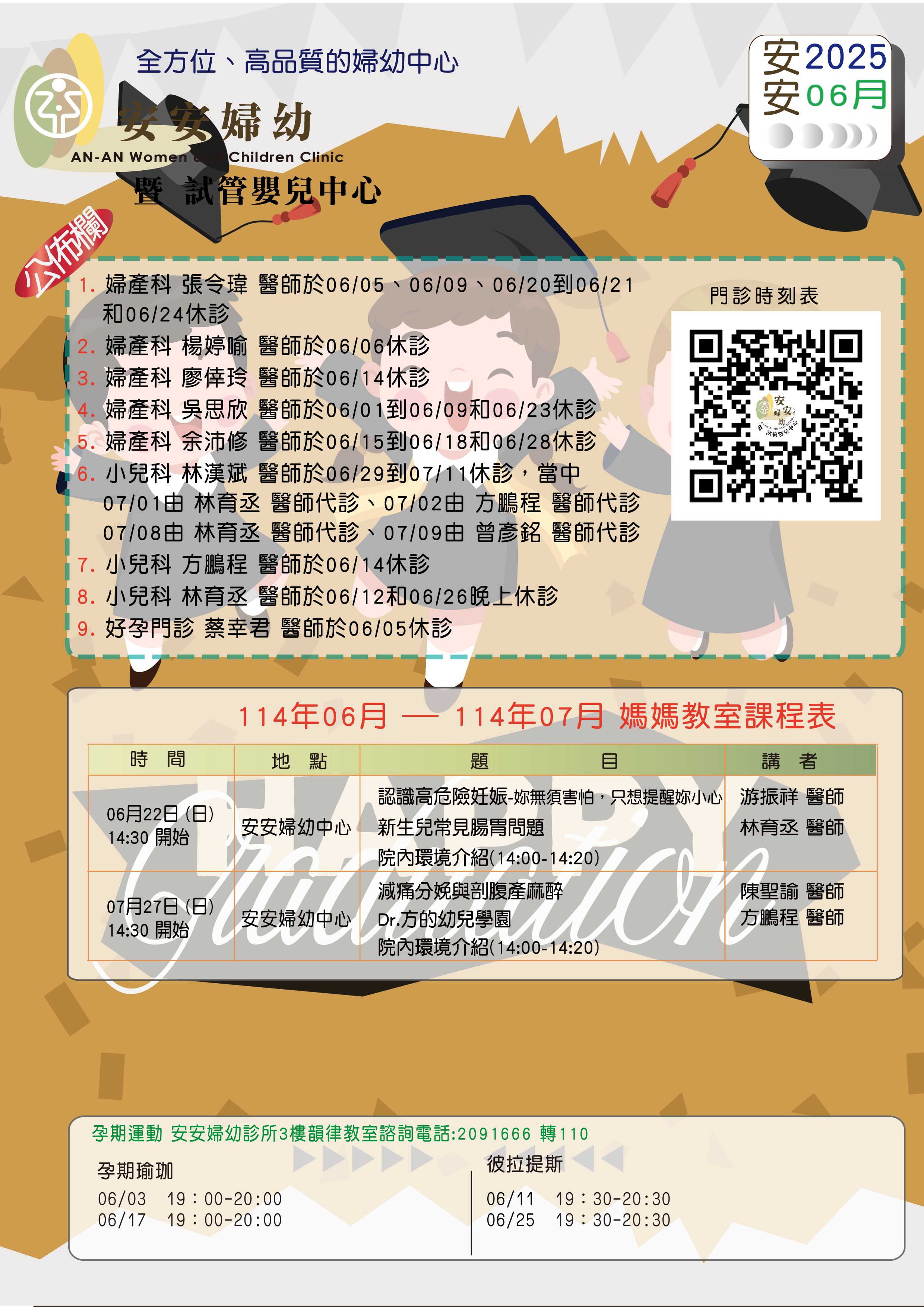 安安婦幼中心 2025年六月份公佈事項、課程表及門診表