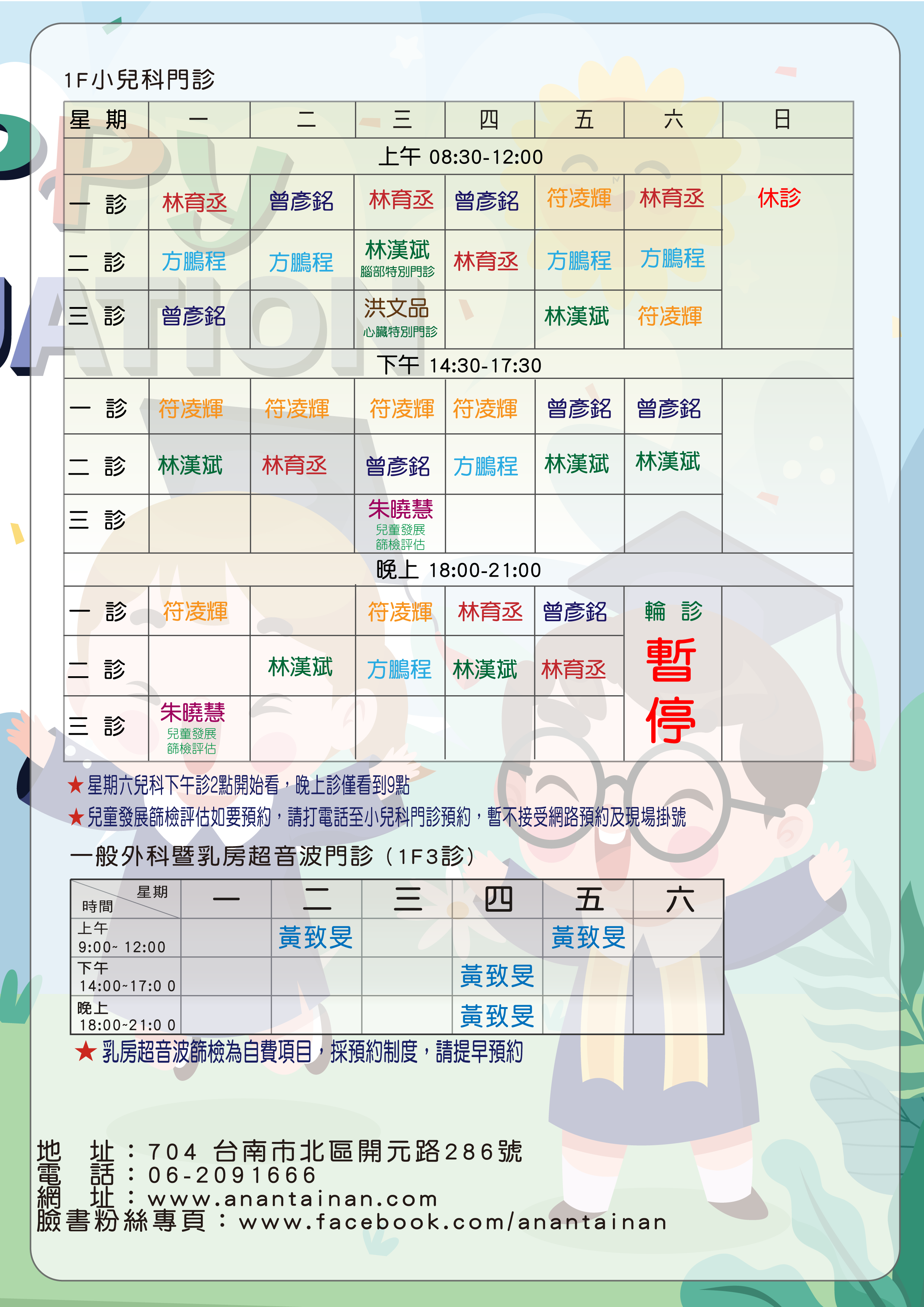 門診時刻表 http://www.anantainan.com/about4.html