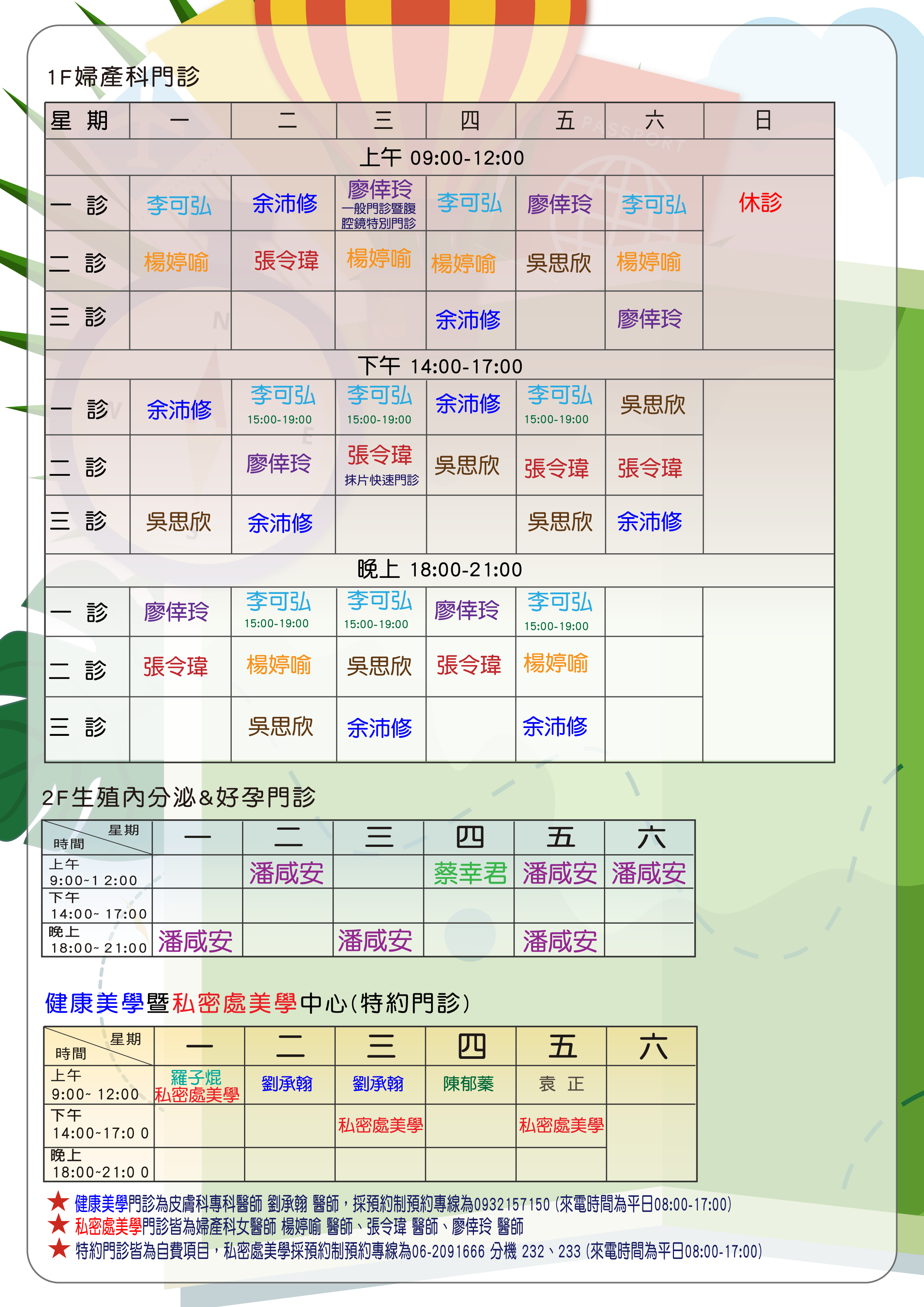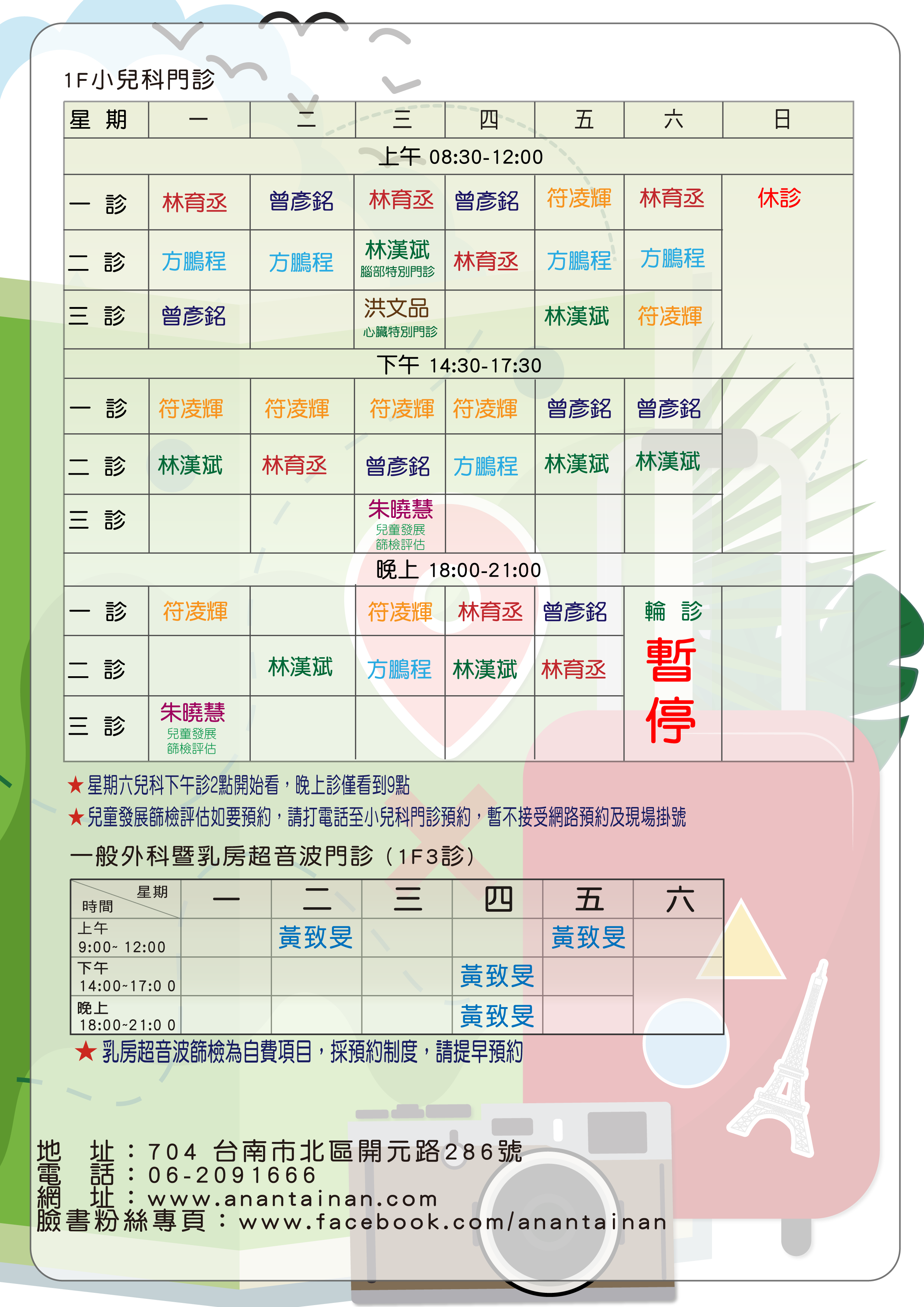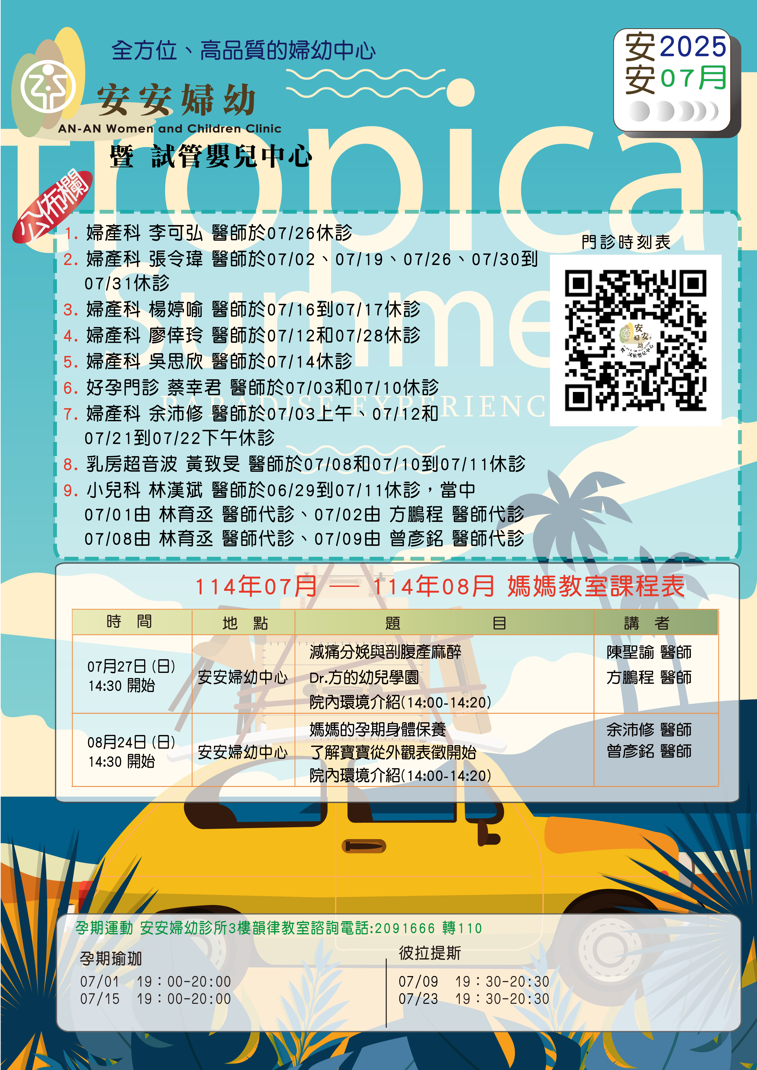 安安婦幼中心 2025年七月份公佈事項、課程表及門診表